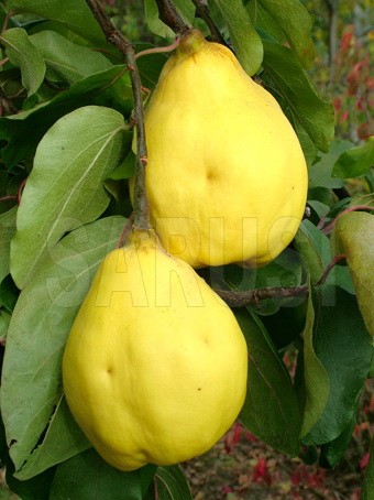 Fruct de marime mare, forma de para, culoare galbena, pulpa alb-galbuie, cu gust foarte bun.