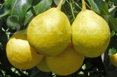 Fructe de marime mica (40 - 50 gr.), de forma scurt piriforma, culoare galbena, cu gust foarte bun si dulce.
