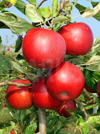 Fructe de marime mijlociu spre mare (170 - 180 gr), usor tronconic cu epiderma verde galbui, acoperita cu rosu oranj pe 2/3 din suprafata, pulpa este ferma, suculenta, usor acidulata.